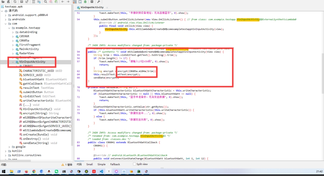 给了一个流量包一个apk,首先分析流量包,得到了传输数据,需要分析apk来解密这段字符串,题目跟招商铸盾初赛的那一道vin交互很是相似