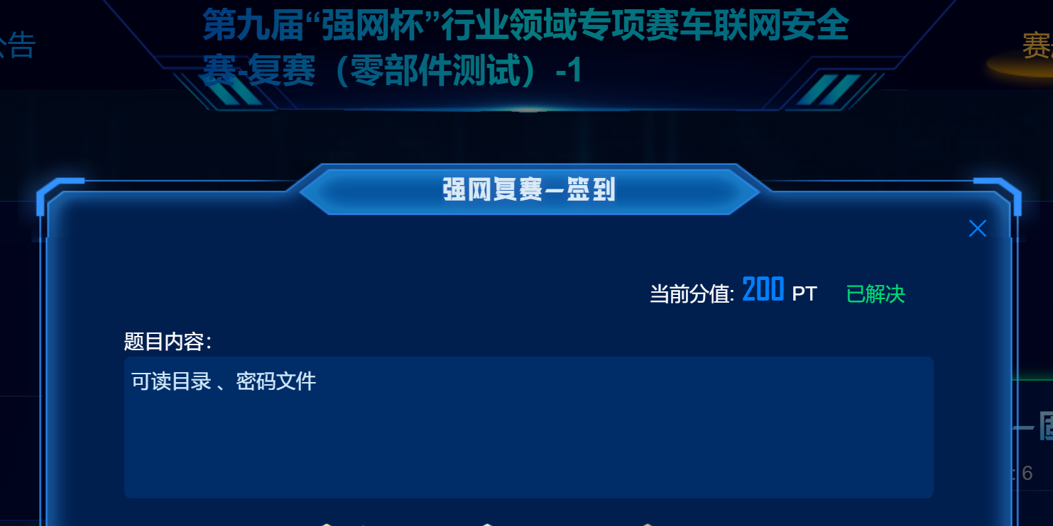 第九届“强网杯”行业领域专项赛车联网安全赛-复赛(零部件测试)WP