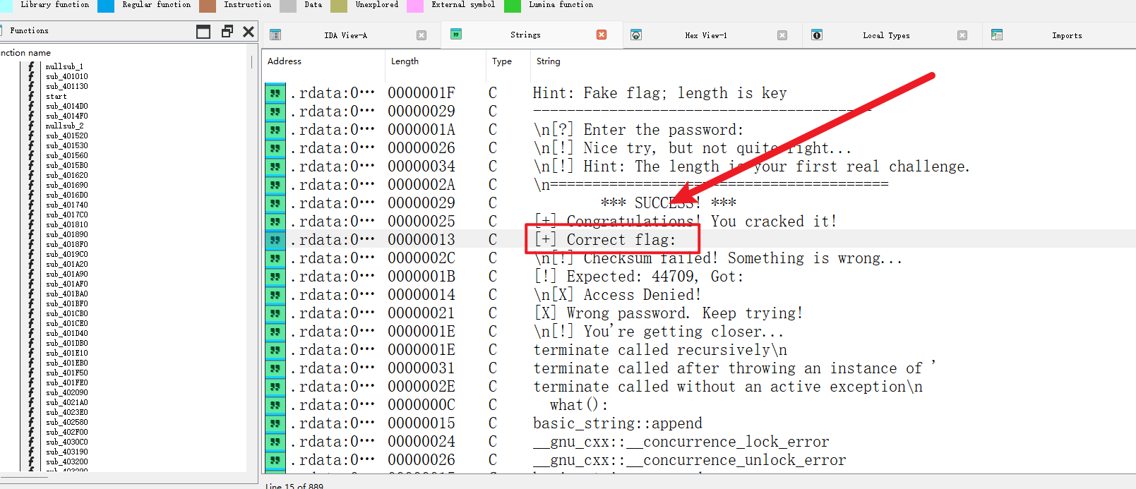 "Correct flag" → 字符串地址 0x4D3201