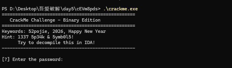 2026 吾爱破解春节解题(day1-day6+mcp中级题) Day1 - 送分题 关注论坛微信公众号:吾爱破解论坛,回复“52TDL”获得口令。
